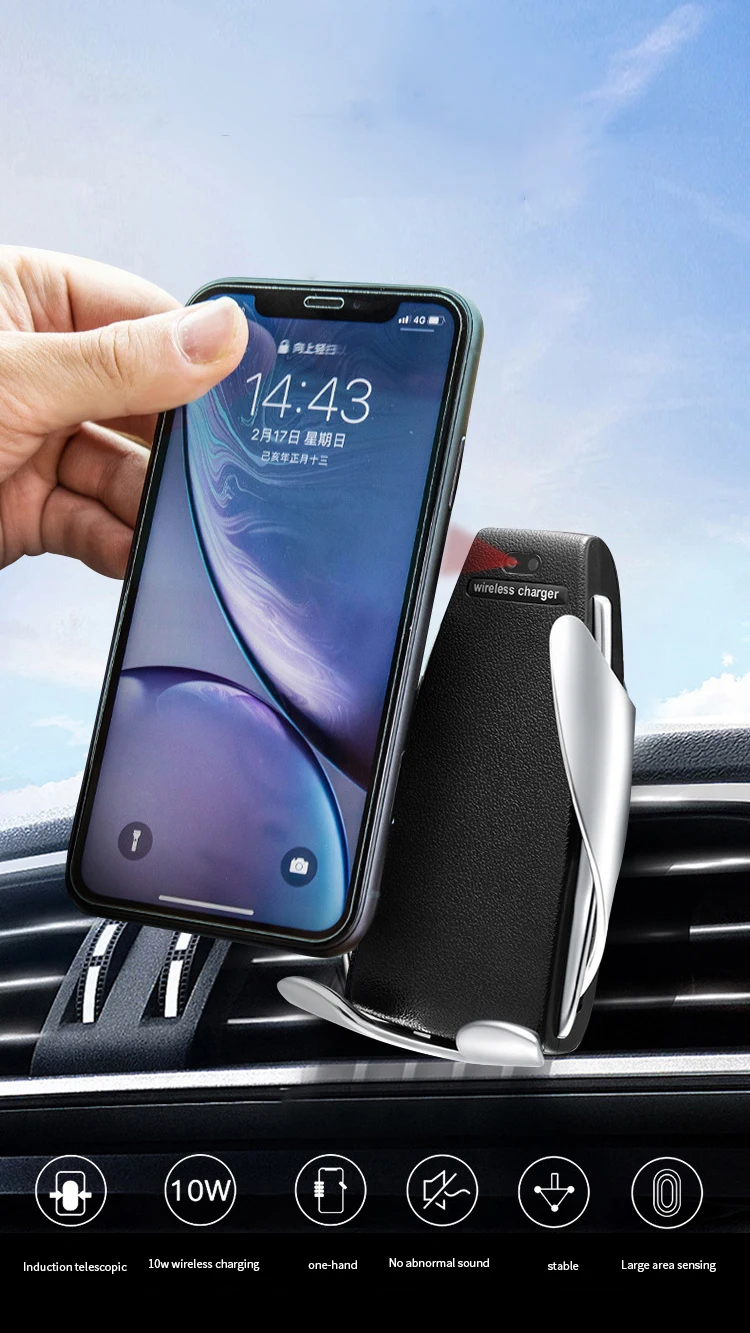 Fix the wireless charging stand in the car Automatically sense the phone and then clamp can finish charging