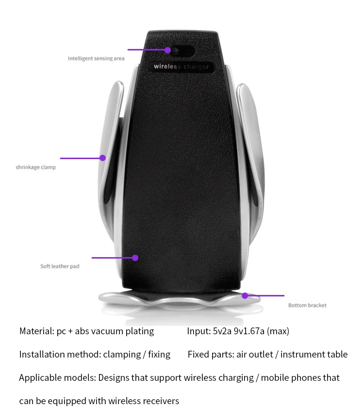 This car wireless charging stand is very convenient. It has infrared sensing technology and can be charged when put on it, and the charging speed is fast.