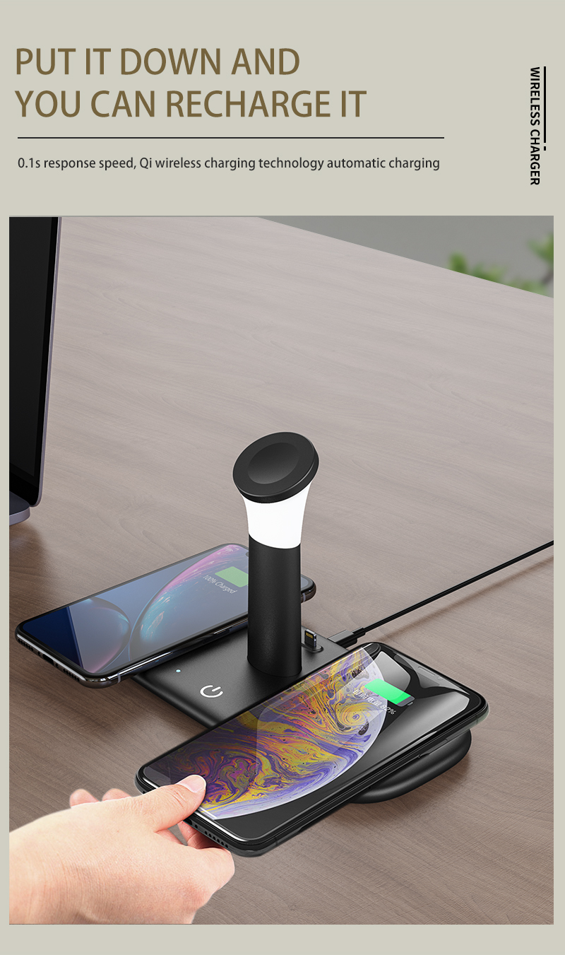 wireless charging + night light white / warm two-color LED light is on, and it can be dimmed by touching the button. -Cold light