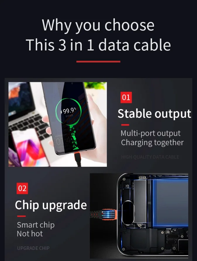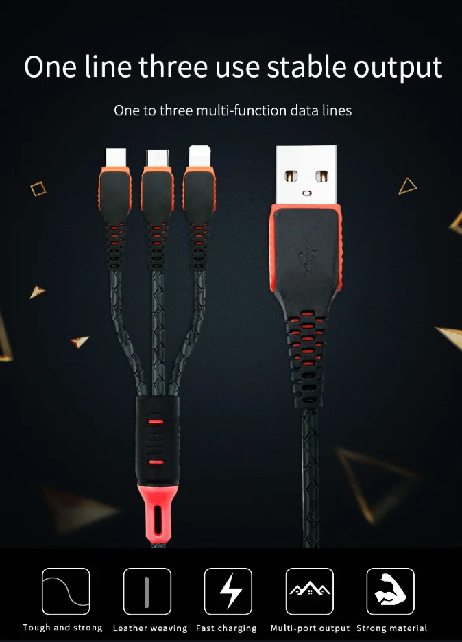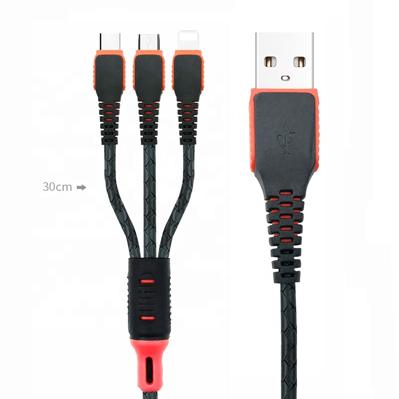 LAIMODA3 in 1 universal through technology usb cables for iphone charger cable charging data cable wholesale for lightning cable